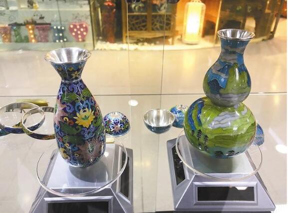 ▲掌上乾坤純銀掐絲景泰藍(lán)酒具。