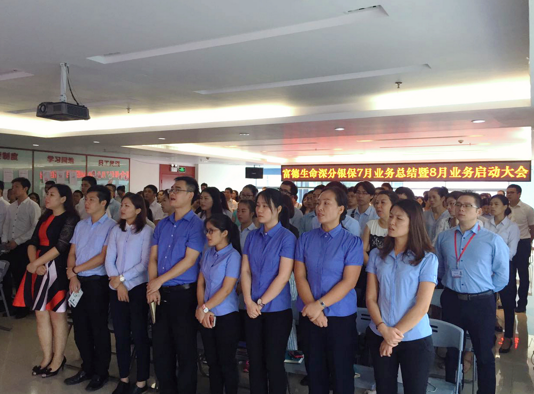 深圳新聞網(wǎng)訊 7月22日,富德生命人壽深圳分公司銀行保險(xiǎn)中心召開銀保中心七月業(yè)務(wù)總結(jié)暨八月業(yè)務(wù)啟動(dòng)大會(huì)。分公司總經(jīng)理助理高東亞、銀保中心總監(jiān)任華、各營業(yè)區(qū)總監(jiān)、部經(jīng)理、客戶經(jīng)理及銀保中心全體內(nèi)勤員工出席會(huì)議。