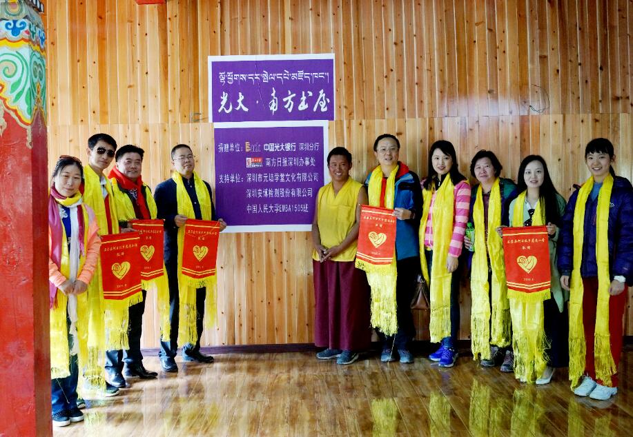 據(jù)了解,本次援建活動是為了幫助四川甘孜阿壩州石渠縣阿日扎鄉(xiāng)的中心小學(xué)與慈悲小學(xué)500多位孩子們,實(shí)現(xiàn)他們的“圖書室”與“音樂教室”的夢想?;顒佑晒獯筱y行深圳分行、南方日報深圳辦事處共同主辦,人民大學(xué)商學(xué)院EMBA1505、元培學(xué)堂和安博檢測股份有限公司協(xié)辦。在這個活動中,來自深圳的光大證券、光大永明保險、光大信托、光大金控、光大期貨、光大環(huán)保、光大能源等光大集團(tuán)駐深單位也積極參與捐款捐物,活動啟動僅兩周,就募集社會愛心人士等各類捐款40萬元,參與人數(shù)26000人。