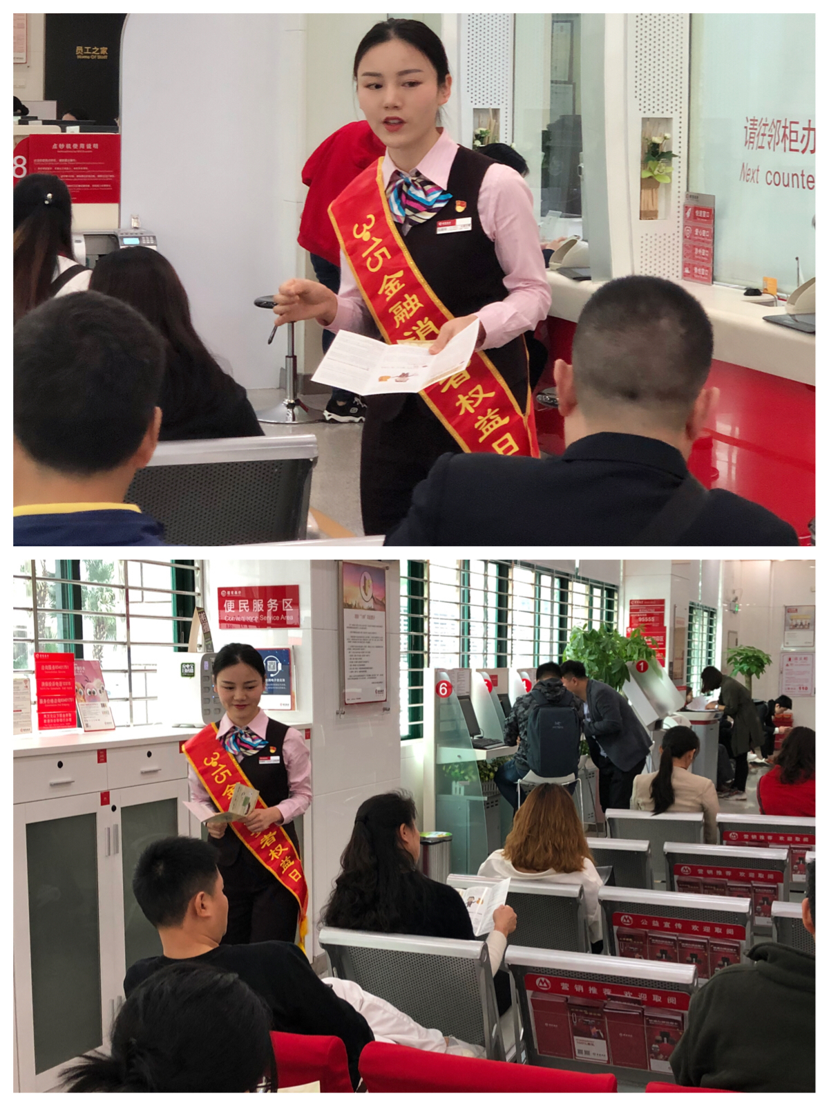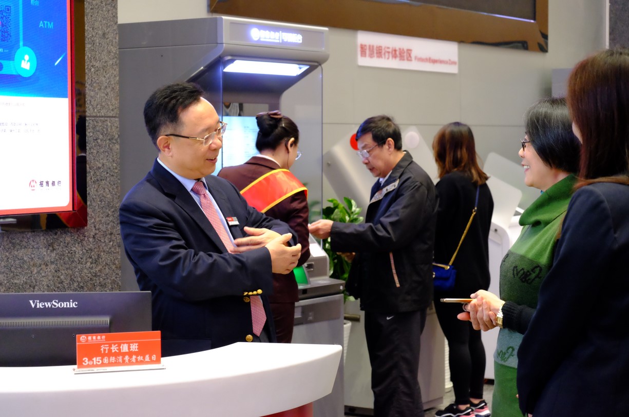 3月15日當天,招商銀行深圳分行開展了“黨委班子下基層”之“當值大堂經理”活動。分行黨委班子成員以普通黨員身份深入一線,到營業(yè)網點大堂“戴黨員徽章、亮身份、作表率”,聯合支行行長隊伍,通過率先垂范宣傳消保知識,鼓勵基層黨員和群眾共同關注消費者聲音,前來辦理業(yè)務的客戶紛紛表示感受到招商銀行真誠貼心的服務,猶如春日里縷縷陽光,溫暖著客戶的心。