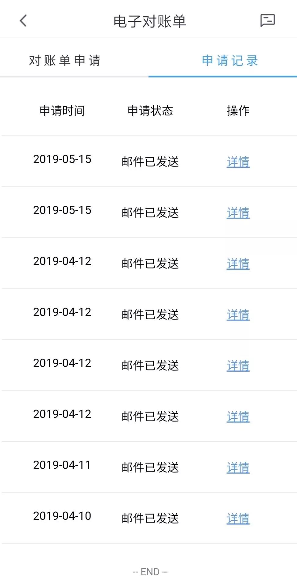 叮咚,電子對賬單已到達郵箱!點擊申請記錄,還可以查詢郵件發(fā)送進度哦!