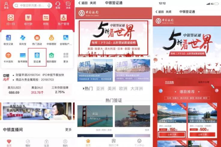 5折沒搶到,怎么辦?不怕,中行送您優(yōu)惠大禮包,8月28日(周三)下午3點(diǎn)-4點(diǎn)期間對于首次參與“五折看世界”半價活動,搶購未成功的用戶,可獲得總價值210元優(yōu)惠券禮包(同一個中國銀行賬戶限首次領(lǐng)?。┤绻k理簽證需要開立存款證明可直接在中國銀行手機(jī)銀行辦理線上個人存款證明。不用線下跑銀行,不用排隊等號即可在線申請包括立等可取的電子存款證明以及郵寄到家的紙質(zhì)存款證明。