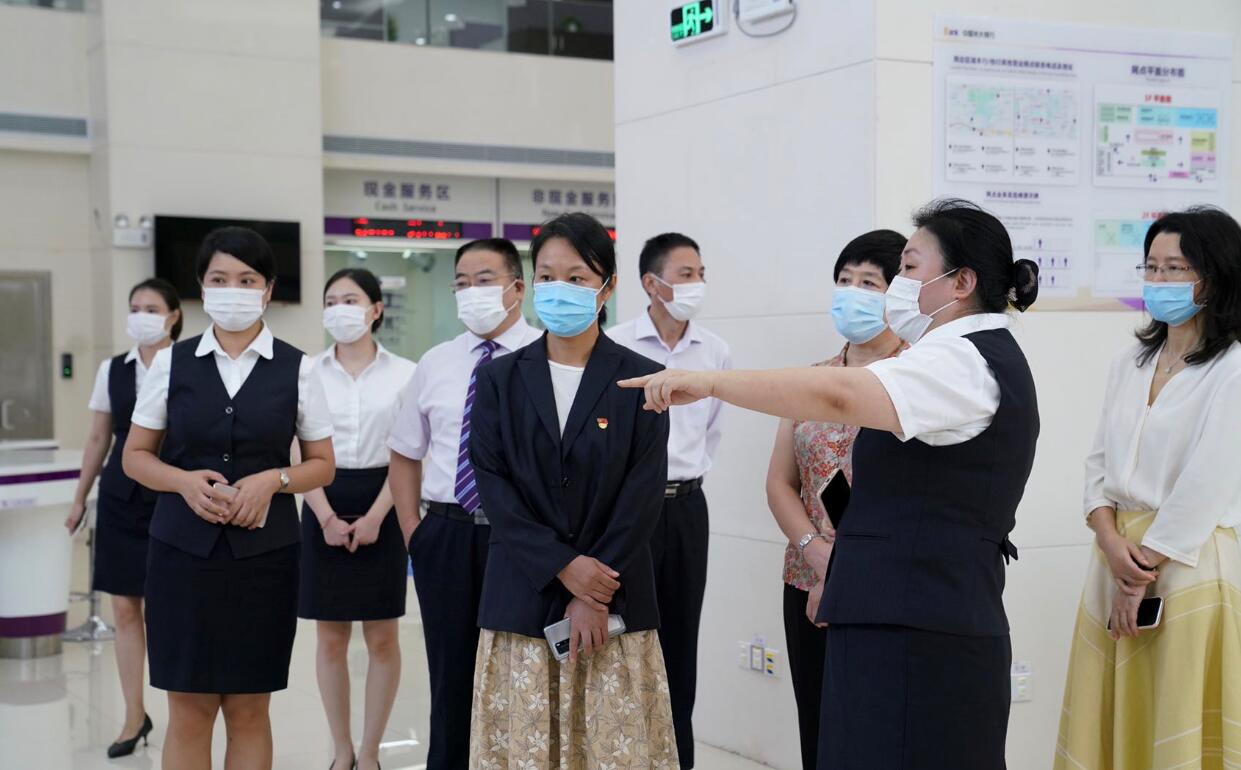 分行黨委高度重視此次調(diào)研活動,紀委書記方眾部署安排,在分行渠道管理部/消費者權(quán)益保護部和支行負責(zé)人陪同下,朱會長一行參觀了高新技術(shù)園支行營業(yè)部,對網(wǎng)點的服務(wù)環(huán)境、服務(wù)功能布局、大堂管理、柜面服務(wù)與效率、消費者權(quán)益保護與責(zé)任、服務(wù)文化建設(shè)等情況進行了現(xiàn)場調(diào)研,并與相關(guān)負責(zé)人進行了深入交流。胡曉莉主任現(xiàn)場體驗了光大銀行智能柜臺的服務(wù)后,對于其便捷性、智能性予以肯定。