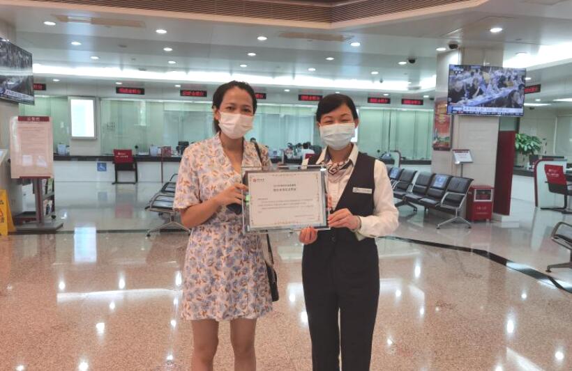 深圳中行工作人員為購買客戶頒發(fā)“深圳市地方債券柜臺(tái)首發(fā)紀(jì)念憑證”