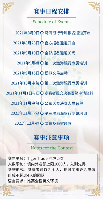 活動冠名方——渤海銀行希冀以本賽事的舉辦為契機,通過緊張激勵而又活潑有趣的模擬投資組合競賽形式、寓教于樂,樹立并培養(yǎng)青年一代對于財富增長與傳承的正確理念,引導年輕人理解并實踐綠色投資,促進青年一代“財商”理念與能力的全面提升。