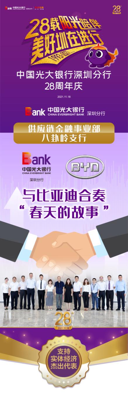 作為光大銀行深圳分行首批成立的支行之一,八卦嶺支行是服務(wù)比亞迪的“第一線”。一個(gè)個(gè)服務(wù)實(shí)體經(jīng)濟(jì)、相伴成長(zhǎng)的動(dòng)人故事,成為八卦嶺支行代代相傳的寶貴財(cái)富。在深圳分行28周年“十大最美光陰故事”評(píng)選中,供應(yīng)鏈金融事業(yè)部與八卦嶺支行榮獲支持實(shí)體經(jīng)濟(jì)杰出代表。