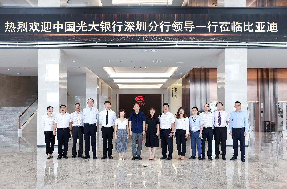2018年12月11日,光大集團(tuán)與比亞迪在中國(guó)光大中心簽署戰(zhàn)略合作協(xié)議。次年9月,李曉鵬董事長(zhǎng)前往深圳調(diào)研比亞迪,與比亞迪董事長(zhǎng)兼總裁王傳福進(jìn)行工作會(huì)談,雙方合作更為密切。2021年6月9日,光大銀行深圳分行行長(zhǎng)韓學(xué)智率隊(duì)拜訪比亞迪集團(tuán),雙方就踐行國(guó)家“創(chuàng)新、協(xié)調(diào)、綠色、開放、共享”發(fā)展理念,進(jìn)一步落實(shí)中國(guó)光大集團(tuán)與比亞迪集團(tuán)重要戰(zhàn)略合作協(xié)議,深化綜合金融服務(wù),加強(qiáng)協(xié)同聯(lián)動(dòng)發(fā)展等方面進(jìn)行座談,為下一步光大銀行與比亞迪集團(tuán)的合作打下堅(jiān)實(shí)的基礎(chǔ)。