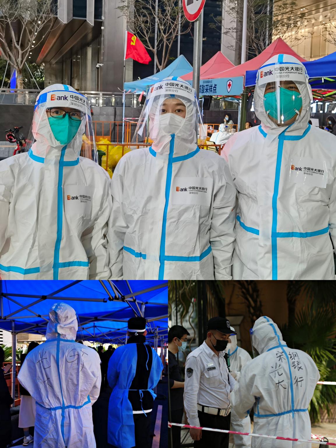 在疫情防控的關(guān)鍵時(shí)期,深圳分行黨委堅(jiān)決貫徹落實(shí)當(dāng)?shù)卣姆揽匾螅中悬h委書記、行長(zhǎng)韓學(xué)智同志緊急召開黨委會(huì)議,啟動(dòng)應(yīng)急預(yù)案,積極部署并投入疫情防控工作,確保日常營運(yùn)和客戶服務(wù)等工作有序運(yùn)轉(zhuǎn)。在深圳福田區(qū)金融工作局的組織與號(hào)召下,分行黨委要求全體黨員干部發(fā)揮先鋒模范作用,主動(dòng)為社區(qū)疫情防控工作提供志愿服務(wù)。分行黨委委員們率先垂范,分頭帶領(lǐng)黨員干部奔赴社區(qū)慰問抗戰(zhàn)一線工作人員,并犧牲周末休息時(shí)間深入社區(qū)核酸采樣點(diǎn),脫下西裝變身“大白”。深圳分行各黨支部和團(tuán)支部先后組織開展各類志愿服務(wù)累計(jì)時(shí)長(zhǎng)超過100小時(shí),活躍在防疫抗疫一線的同志們?cè)谌ΡU蠌V大群眾金融服務(wù)需求的同時(shí),和醫(yī)護(hù)工作者一同守護(hù)著千家萬戶。作為集團(tuán)駐深企業(yè)協(xié)同工作的牽頭單位,分行牽頭組建駐深企業(yè)志愿者先鋒隊(duì),緊急投身福田區(qū)抗擊疫情的各個(gè)戰(zhàn)線和各個(gè)角落,不分晝夜、不論疲倦、以實(shí)際行動(dòng)踐行初心、使命和擔(dān)當(dāng),弘揚(yáng)新時(shí)代共產(chǎn)黨人的奉獻(xiàn)精神。“如果不是親身體驗(yàn)志愿者服務(wù)工作,永遠(yuǎn)不知道抗疫人員的工作是如此辛苦!有多少人在負(fù)重前行才確保了深圳市民有序和安寧的生活。此刻很想擁抱可親可敬的你們,防護(hù)服雖然阻擋了我們的擁抱,但無法阻擋我們一起抗擊疫情的心?!币晃恢驹刚哌@樣記錄到。
