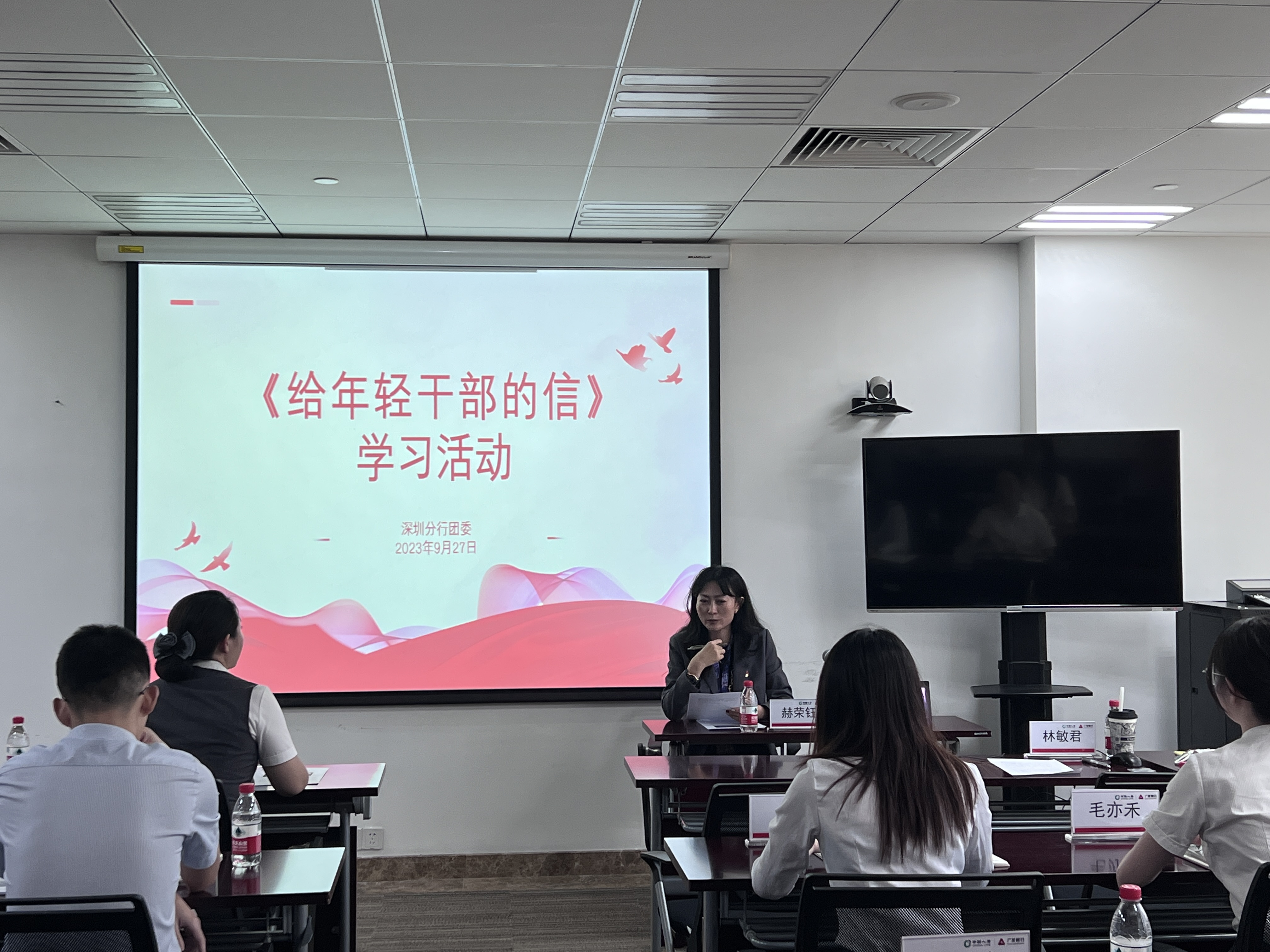 深圳新聞網(wǎng)2023年10月17日訊 (記者 朱琳 通訊員 金橋 李華鳳)為深入學習貫徹習關于青年工作的重要論述,加強團員青年廉潔教育,引導青年永葆心靈的純粹,近期,廣發(fā)銀行深圳分行團委組織開展《給年輕干部的信》學習活動,通過線下、線上同步會議的形式與全體團干部共讀共學,各團委委員、團總支書記、團支部書記近50人參加。