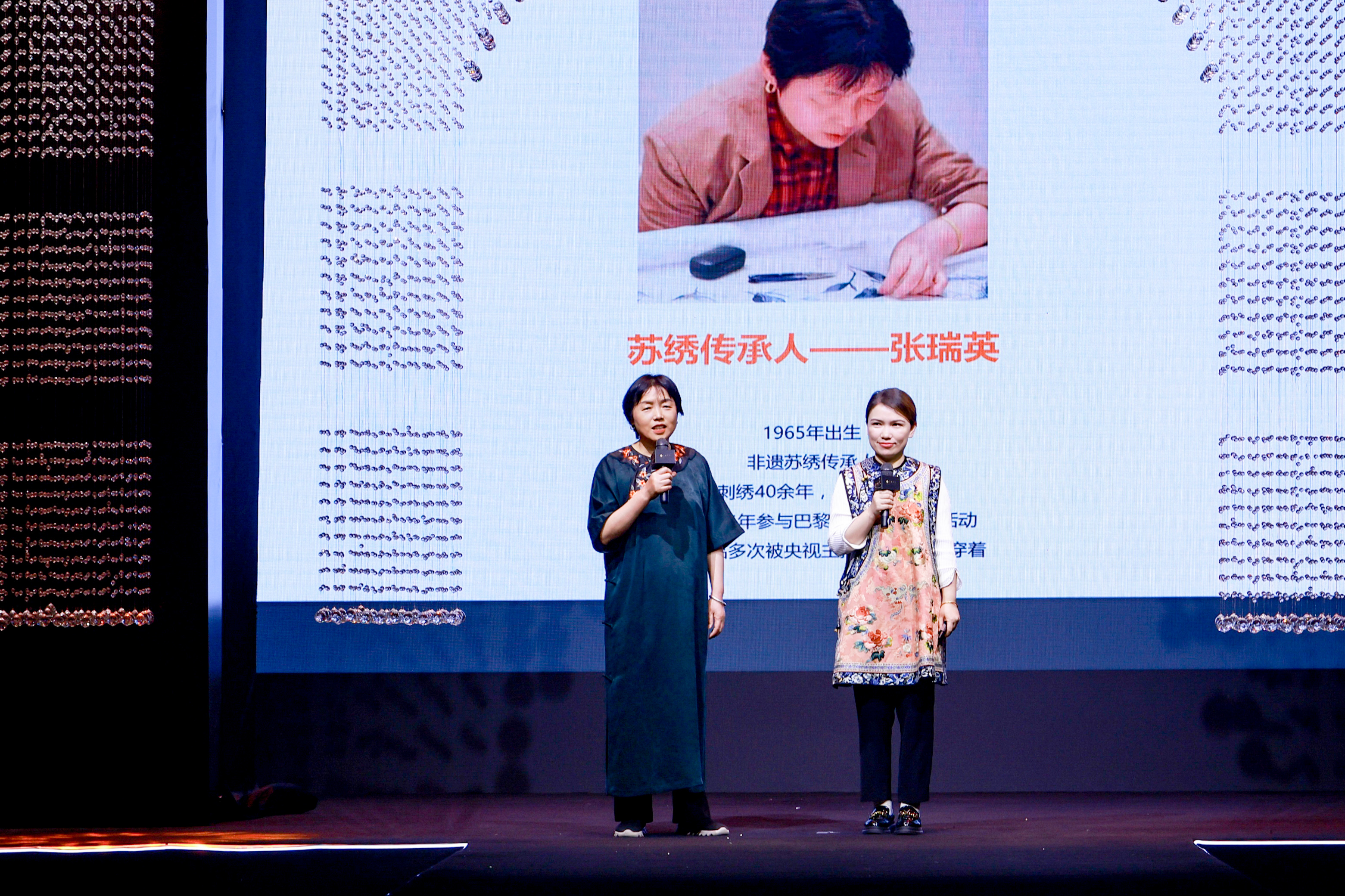 蘇繡傳人張瑞英現(xiàn)場進行了蘇繡文化講解,讓非遺傳承技藝再上舞臺,將非遺元素運用在當(dāng)代的生活方式中,展現(xiàn)非遺文化非同尋常的光芒之處,傳播非遺重要傳承內(nèi)核,用服裝承載國風(fēng)文化,傳遞中國風(fēng)采。當(dāng)以蘇繡手藝復(fù)刻的百年服飾再現(xiàn)于秀場,傳統(tǒng)技藝真實演繹“經(jīng)典永流傳”,彰顯了傳承中國文化的手工技藝“奢侈品”含義。