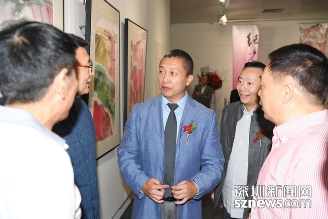圖為香港中聯(lián)辦宣傳文體部副部長(zhǎng)朱挺(右三)出席紀(jì)光吉畫(huà)展。