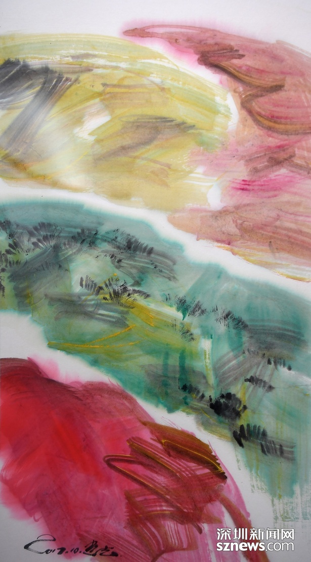 深圳大學(xué)藝術(shù)與設(shè)計(jì)學(xué)院副院長(zhǎng)鄒明這樣評(píng)價(jià)紀(jì)光吉:如果說(shuō)繪畫(huà)重在情感表達(dá)的話,在紀(jì)光吉的作品里讓人著實(shí)感受了一種隨心所欲的暢快。他幾乎沒(méi)有傳統(tǒng)觀念的束縛,行云流水信筆為之,花非花,山非山,墨色交融,隨意為之,意象、心意,只是表現(xiàn)心中對(duì)物象的一種感知,畫(huà)的樂(lè)趣也就自然而然其中了。品味其中,視覺(jué)上的快感有種自由自在的輕松,尤其是他畫(huà)里的花卉,沒(méi)有清晰的花朵,只是綻放的色彩和姿意的線條相互交織在一起,璀璨、斑瀾,洋溢著一種浪漫氣息。