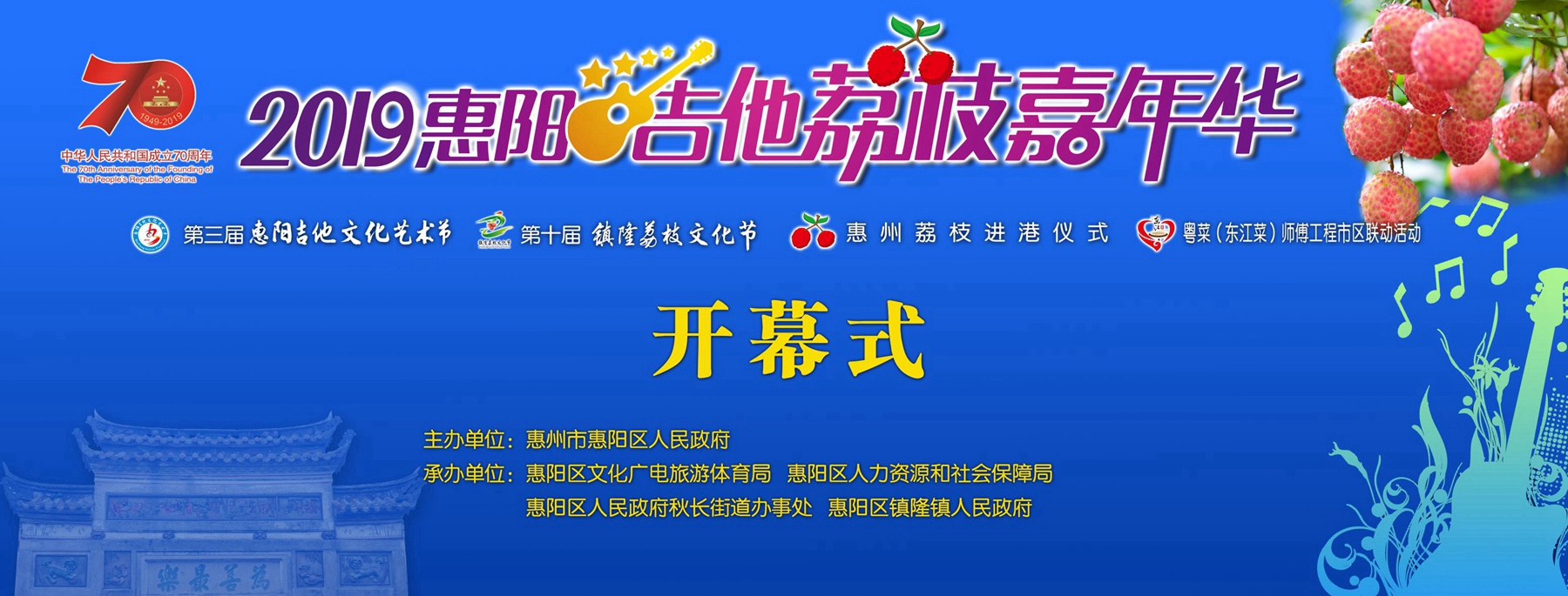 6月21日上午,2019惠陽吉他荔枝嘉年華開幕式在惠陽體育會展中心舉行,這標志著惠陽一年一度“吉他+荔枝”的盛夏之約正式開啟,十大精彩活動持續(xù)至7月10日。這將進一步提升惠陽“吉他+荔枝”品牌品質(zhì),提升惠陽知名度、美譽度,并充分展示惠陽鮮明的產(chǎn)業(yè)特色、深厚的文化底蘊和豐富的旅游產(chǎn)品。