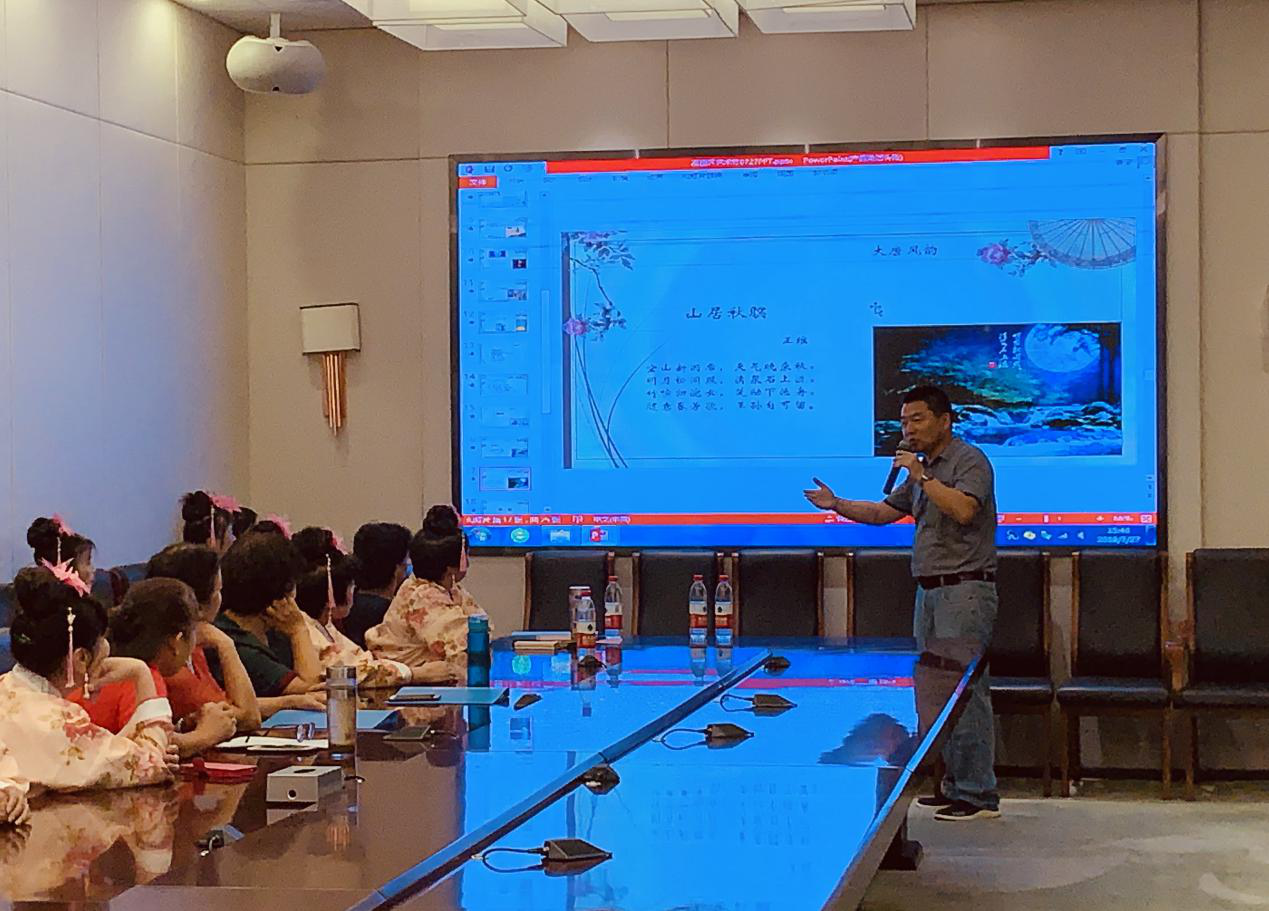 隨后,由心與六藝研習(xí)會副會長、壹書優(yōu)秀閱讀推廣人郝洪擔(dān)任閱讀講座的主講人,以“唐詩韻”主題,講解唐詩的魅力。郝老師從政治、經(jīng)濟(jì)、軍事等多個方面解析唐詩達(dá)到歷史高度的必然性。他結(jié)合唐詩在文學(xué)史上的地位來闡明賞讀唐詩的必要性,并表示,唐詩所展現(xiàn)的雄渾大氣,詩化了今人的生活,可以將我們的審美提升到一個新高度。