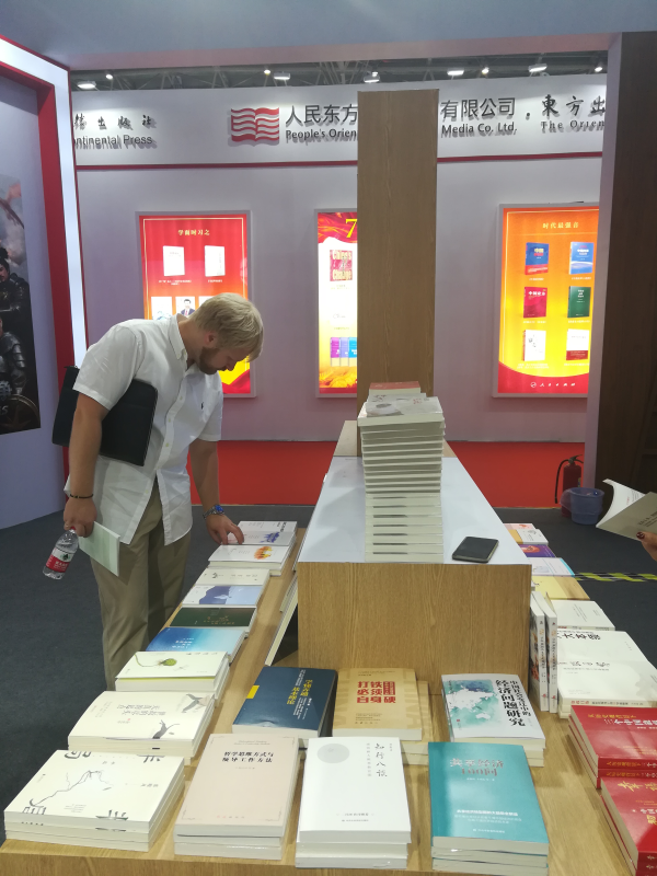 中國北京出版創(chuàng)意產(chǎn)業(yè)園區(qū)企業(yè)北京華景時代文化傳媒有限公司、禹田翰風圖書有限公司、后浪等單位參展,本次展出的亮點圖書包括慶祝新中國成立70周年系列如《跨越(1949-2019)》《中國天眼:南仁東傳》《種子鐘揚》《初心最美》等;展現(xiàn)北京城的歷史文化沿革、經(jīng)濟發(fā)展概貌的《北京秘密:你所不知道的全域文化之城》《北京城》等書;總結中國模式、中國道路,提供全球治理的中國方案的《40年改變中國》《中國道路的成功密碼》《強國長征路》等圖書。