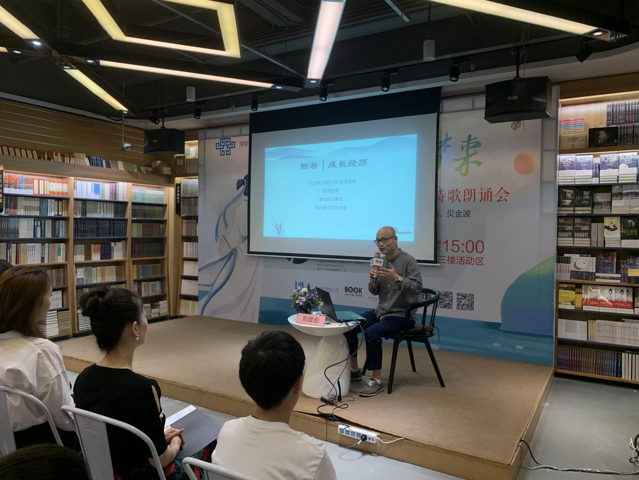 深圳新聞網(wǎng)訊 9月21日下午,由深圳市宣傳文化事業(yè)發(fā)展專項(xiàng)基金資助的“新時(shí)代中華優(yōu)秀傳統(tǒng)文化進(jìn)社區(qū)”項(xiàng)目之“鐵馬冰河入夢(mèng)來”陸游愛國(guó)詩(shī)詞公益講座暨陸游愛國(guó)詩(shī)詞朗誦會(huì)在羅湖書城三樓活動(dòng)區(qū)成功舉辦。本次活動(dòng)由深圳市壹書文化傳播有限責(zé)任公司、深圳書城羅湖城共同主辦,壹書閱讀推廣人、愛詩(shī)家創(chuàng)始人劉建彪先生擔(dān)任主講嘉賓?;顒?dòng)尚未開始,現(xiàn)場(chǎng)已座無虛席,觀眾們對(duì)講座充滿了期待,更有小朋友們朗誦起了陸游的名句。