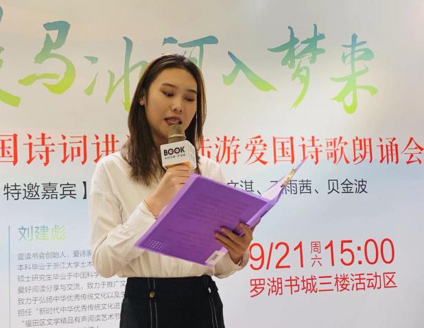 緊接著,陸游愛國(guó)詩(shī)詞朗誦會(huì)正式開始。劉亦欣小朋友聲情并茂地朗誦了《我心中的祖國(guó)》,作為特別表演節(jié)目喜迎國(guó)慶節(jié)。隨后,優(yōu)秀的詩(shī)詞愛好者們齊聚一堂,伴隨著或慷慨悲涼,或激昂向上的背景音樂,為在場(chǎng)觀眾帶來了一場(chǎng)豐富的視聽盛宴,如陸上老師的一首《三月十七夜醉中作》,音調(diào)鏗鏘,情緒飽滿,贏得掌聲陣陣。