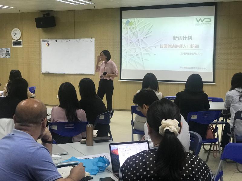 據(jù)介紹,在2019年秋季學(xué)期,新雨計(jì)劃項(xiàng)目共收到福田區(qū)20個(gè)學(xué)校,181個(gè)班,362節(jié)課的普法課程授課需求,自10月14日開始,新雨計(jì)劃項(xiàng)目志愿律師已經(jīng)陸續(xù)開始進(jìn)入校園授課。為滿足更多學(xué)校的普法課程需求,同時(shí)也為更多志愿律師提供參與到新雨計(jì)劃項(xiàng)目活動中的機(jī)會,維德中心于10月18日、19日分別舉辦了一場志愿律師崗前培訓(xùn)活動,參與過培訓(xùn)的律師后續(xù)需要提交一份試課視頻供新雨計(jì)劃資深授課律師進(jìn)行評估,試課視頻經(jīng)評估合格的志愿律師將能夠認(rèn)領(lǐng)班級參與校園授課活動。