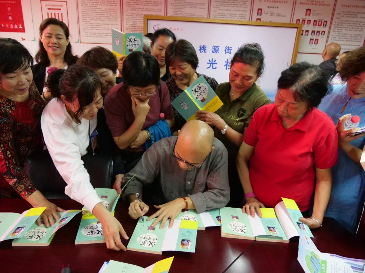 講座結(jié)束之后,社區(qū)居民紛紛拿起手中的創(chuàng)建文明城市學(xué)習(xí)讀本《漢字與修身智慧》要求劉建彪老師簽名,“這是一本很棒的美德教育親子讀物,回去和孫子認(rèn)真品讀每個(gè)漢字,借助優(yōu)秀傳統(tǒng)文化不斷提升個(gè)人的文明素養(yǎng)?!弊≡趯氈榛▓@的退休老師丁阿姨說。 (通訊員:楊婷姻 攝影:田正中)