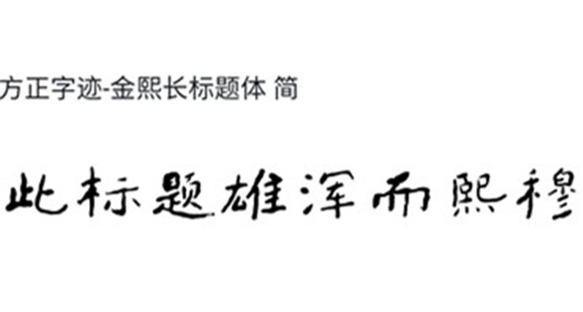 金熙長先生曾在深圳圖書館工作十多年,一直致力于中華傳統(tǒng)文化的修習,于古琴、古音韻、古詩詞、古曲及道教科儀與音樂等方面用功亦勤,又以《中國文字學》、《平面設計》、《藝術(shù)美學》等相關(guān)交叉與邊緣學科為創(chuàng)作依據(jù),故他可以真陽書風寫仙家書法、以沖和靜穆書風寫佛教經(jīng)典…此外,具有著極大量書法的千錘百煉的同時,金熙長先生更具有著豐富的為商號題寫招牌的經(jīng)驗,所以深諳作為新一代標題體,一篇題目,一個招牌中,如果每個字都用厚重的寫法放在一行往往會呆板,反之,又會浮躁輕飄。故本字體中,以厚重端莊而又突出“高古與風骨“的北碑書風為主調(diào),間隔一些活力四射的,突出“風華”的晉帖寫法。《方正字跡-金熙長標題體》整體看上去動中有靜,雄渾中有飄逸,極具文化內(nèi)涵,未來,在廣告、產(chǎn)品包裝、招牌等廣泛應用場景中均可實現(xiàn)出眾的、極好的視覺效果。