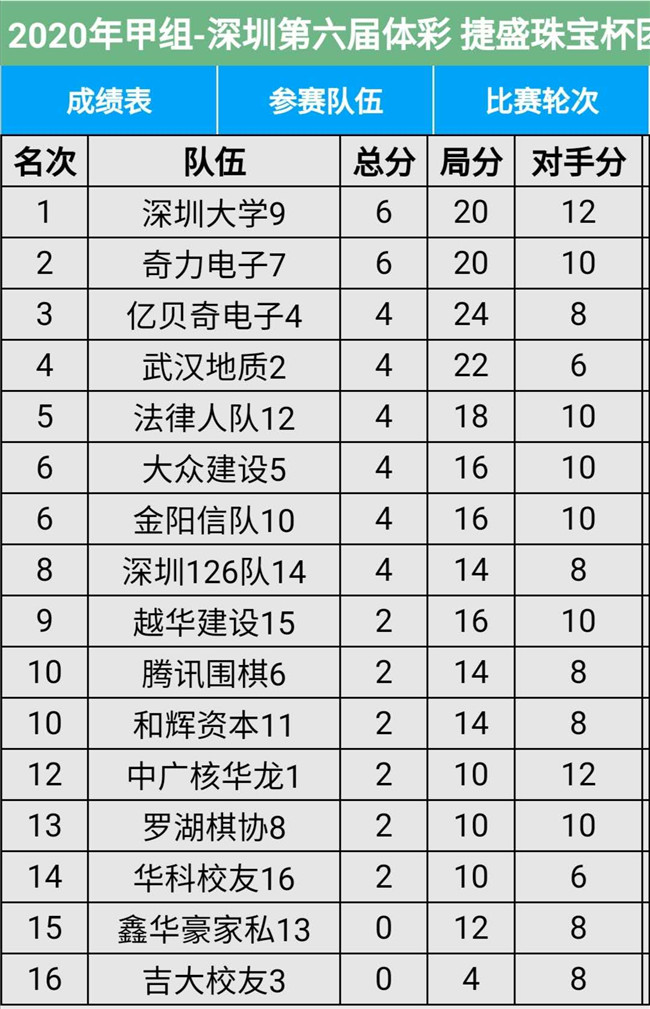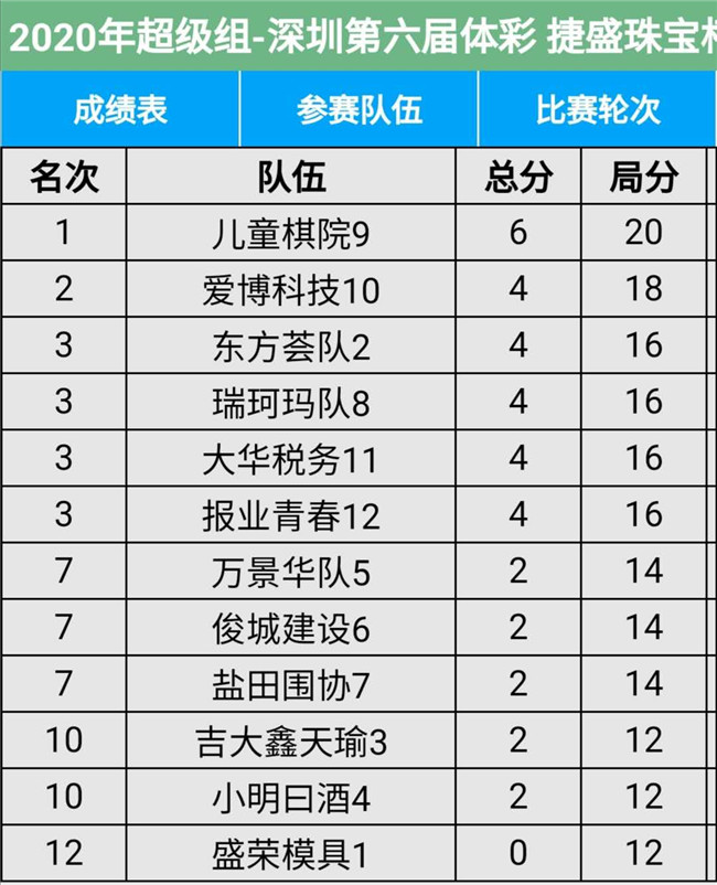 深圳市圍棋聯(lián)賽以其獨特的25D賽制,新穎的團體對抗形式,旗鼓相當?shù)膶嵙Ρ绕?,而深受圍棋愛好者的喜愛,已然成為每年一度的市圍棋愛好者的盛會。本屆?lián)賽共有28支隊伍參賽,每支隊伍12人,領(lǐng)隊和教練各一至兩人,今年參賽人數(shù)約四百多人。其中,超級隊12支,進行11輪單循環(huán)比賽,甲級隊16支進行11輪積分循環(huán)賽。具體賽程安排是:今日開賽后,連續(xù)四個周日,每周3場比賽,計劃在11月22日完成比賽。本屆比賽12支超級隊是:盛榮模具、東方薈隊、吉大隊、小明日酒、萬景華隊、俊城建設(shè)、鹽田棋協(xié)、瑞珂瑪隊、兒童棋院、愛博科技、大華稅務(wù)、報業(yè)青春。16支甲級隊是:中廣核華龍、武漢地質(zhì)、吉大校友、億貝奇電子、大眾建設(shè)、騰訊圍棋、奇力電子、羅湖圍棋、深圳大學、金陽信隊、和輝資本、法律人隊、鑫華豪家私、深圳126隊、越華建設(shè)、華科校友。大家濟濟一堂,通過手談增進友誼,提高棋藝。本屆比賽超級組與甲級組實行升降制,將通過四個周日的比賽,分別決出前六名和三支升降的隊伍。