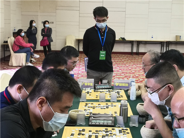 本屆聯(lián)賽在仍在抗疫的形勢下來之不易,賽事組委會非常珍惜,在防疫方面下了一番功夫。本次賽事執(zhí)行主任、著名國手梁偉棠九段介紹說:組委會在本次賽事《補充規(guī)定》中要求“本屆賽事因為疫情防控需要,全體人員必須佩戴口罩,掃碼入場,并全程不得摘下口罩;體溫過高者謝絕入場”。記者觀察到,現(xiàn)場的防疫落實還是比較到位的,一是在賽場入口布置了三人團(tuán)隊,加強了掃碼、體溫檢測、提醒大家戴口罩,凡是入場的隊員、工作人員以及觀戰(zhàn)的圍棋愛好者,都必須進(jìn)行體溫檢測,符合正常體溫的方可入場參賽;二是要求參賽隊員和工作人員戴口罩;三是加強賽場巡查,對沒有自覺戴口罩的在場人員進(jìn)行勸導(dǎo)??傮w來說,賽場防疫秩序良好。