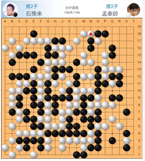 主將臺由深圳隊世界冠軍時越九段執(zhí)白對陣小將王世一五段。中盤戰(zhàn)斗中黑棋連續(xù)下出緩手,白棋取得領先。中央定型白棋又出現小失誤,局面接近。官子階段雙方錯進錯出,局面一度來回波動。最終還是白棋后半盤功力略勝一籌,獲得些許便宜后以明顯優(yōu)勢獲勝,時越執(zhí)白中盤勝王世一。