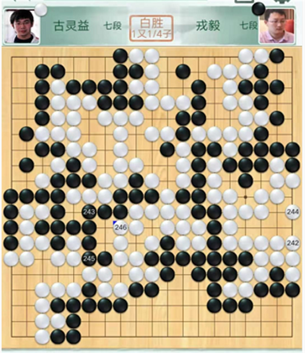 第三臺快棋,深圳隊的戎毅七段執(zhí)黑對陣成都隊的古靈益七段。黑棋開局采取取地策略。下方黑棋形狀處理保守,子效重復(fù)虧損。之后黑棋一直沒有明顯勝機(jī),最終以1又1/4子落敗。戎毅執(zhí)黑1又1/4子負(fù)古靈益。