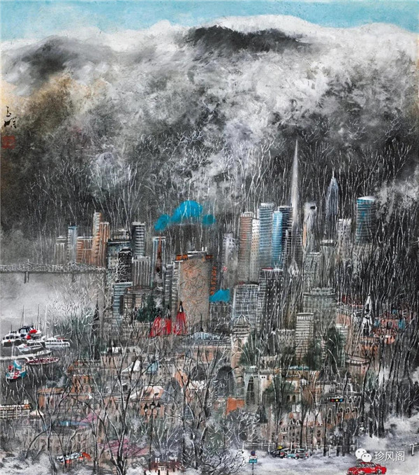 城市山水畫是新時(shí)期以來伴隨著中國城市化浪潮而在美術(shù)界提出的一個(gè)新概念,旨在用中國畫或水墨畫來反映現(xiàn)代人賴以生存的城市及城市生活,以此探索中國畫另一種方式的現(xiàn)代性轉(zhuǎn)型。城市山水畫并不是城市加山水這樣簡單。從藝術(shù)語言來說,山水筆墨的縱情寫意是完全排斥鋼筋水泥筑成的各種擠壓在一起的城市建筑的,中國畫的寫意筆線擅長勾廓,而拙于造型體量的塑造。因而,僅就中國畫表現(xiàn)現(xiàn)代城市建筑這一能力而言,傳統(tǒng)筆墨必須加以改良或新造才能適應(yīng)現(xiàn)代城市建筑及都市景觀的表現(xiàn)需求。從藝術(shù)境界來說,城市山水畫展現(xiàn)的應(yīng)當(dāng)是現(xiàn)代人的生活方式,表達(dá)的意蘊(yùn)也應(yīng)當(dāng)是自然與人的和諧精神;但城市樓宇林立,玻璃和鋼的大廈越建越高,高科技的交通與通信工具迫使城市的個(gè)人空間越來越小,而城市生活節(jié)奏則越來越快,這意味著城市生存與城市生活方式對于人與自然和諧關(guān)系的背離。因而,城市山水畫無論是表現(xiàn)現(xiàn)代化城市生活與自然的諧調(diào)關(guān)系,還是僅僅用筆墨或彩墨表達(dá)現(xiàn)代化城市人文景觀,都是值得中國畫學(xué)探討的一個(gè)重要學(xué)術(shù)課題。