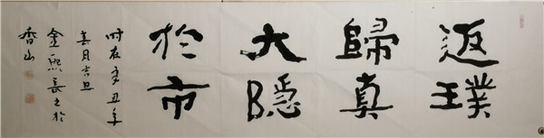 2011年隱居廣東中山,處江湖之遠亦不忘躬耕,以書立德、以筆潤身,專注于佛法經(jīng)文、家學(xué)文化和百家家訓(xùn)書法的研究,并創(chuàng)辦五福書院,通過教授古琴、書法、四書誦讀等形式開班授課,以中國傳統(tǒng)文化踐行家學(xué)文化。歸隱而不忘憂國,金熙長先生自隱居以來,在珠海、中山、深圳、上海等地舉辦了多次《以書立德、以筆潤身——常福居士百家家訓(xùn)、百種心經(jīng)書法作品全國巡展》;2020年8月,金熙長先生的《方正字跡-金熙長標(biāo)題體》在方正字庫正式上線。