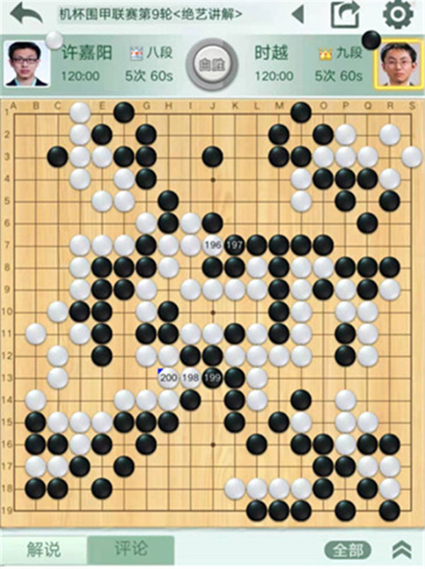 四臺(tái)等級(jí)分排名15的時(shí)越執(zhí)黑對(duì)陣排名14的許嘉陽(yáng)。黑棋開(kāi)局行棋有些平緩,慢慢等機(jī)會(huì)。但之后白棋發(fā)揮上佳,黑棋沒(méi)有明顯機(jī)會(huì)落敗。
