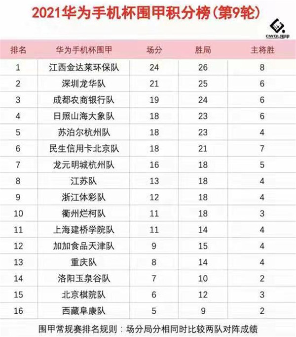 2021華為手機(jī)杯中國(guó)圍棋甲級(jí)聯(lián)賽常規(guī)賽第九輪江西金達(dá)萊環(huán)保隊(duì)3:1深圳龍華隊(duì)
