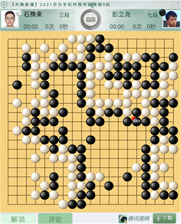 一臺(tái)石豫來(lái)執(zhí)白對(duì)陣彭立堯。開(kāi)局白棋不錯(cuò),進(jìn)入中盤白棋大局不足,被黑在中央雙方消長(zhǎng)處連續(xù)行棋,局面被動(dòng)。官子時(shí)白棋也失誤多多,最終黑棋大勝。