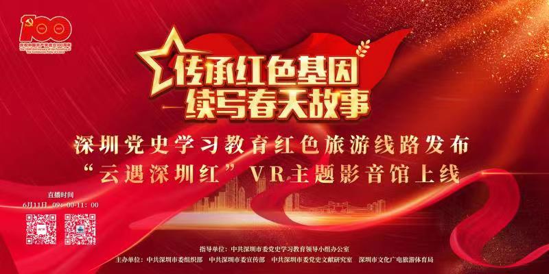 讀特客戶端·深圳新聞網(wǎng)2021年6月9日訊(記者 田志強)2021年是中國共產(chǎn)黨成立100周年,全國上下掀起黨史學習教育的熱潮,而深圳的“紅色歷史”,你了解多少?6月11日,“傳承紅色基因續(xù)寫春天故事”深圳黨史學習教育紅色旅游線路發(fā)布暨“云遇深圳紅”VR主題影音館上線儀式,將在深圳當代藝術(shù)與城市規(guī)劃館舉辦,將發(fā)布6條紅色旅游線路,共30個景點,由中央廣播電視總臺央廣網(wǎng)、央視網(wǎng)將對儀式及六條旅游線路的紅色大巴領(lǐng)游進行直播,每個景點都有一個生動的歷史故事,讓黨史學習教育“鮮活”起來。