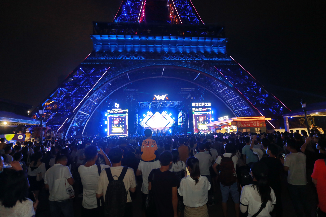 17:00—22:00鐵塔下,今年國慶最重磅節(jié)目超豪華陣容“WOW潮音嘉年華”閃亮登場(chǎng),本屆潮音嘉年華群星璀璨,新生代實(shí)力歌手趙磊、狂歡一路歌舞相隨,國內(nèi)dancerock先行軍“脆莓樂隊(duì)”一經(jīng)出場(chǎng)全場(chǎng)狂歡吶喊,粉絲們瘋狂打 call!直擊心靈的音樂,震撼的舞臺(tái)效果游客們紛紛表示“值回票價(jià)”。接下來的幾天重磅明星接連不斷: solo新星趙讓、霓虹花園、Hiphop少年組合BOY STORY、脆莓樂隊(duì)、LeeyOn李昂、對(duì)角巷樂隊(duì)、布偶樂隊(duì)、圳動(dòng)、黑玫瑰俱樂部、Spaceman太空人等演藝界先鋒人物將陸續(xù)登上舞臺(tái)傾情獻(xiàn)演,用充滿活力的青春姿態(tài)向未來致敬,現(xiàn)場(chǎng)游客沉浸其中,隨著歌手與音樂不斷嗨!環(huán)球舞臺(tái)同時(shí)上演大型音樂舞蹈史詩《盛世紀(jì)》;冰場(chǎng)廣場(chǎng)開啟魔幻光影秀《奇幻歐洲》。