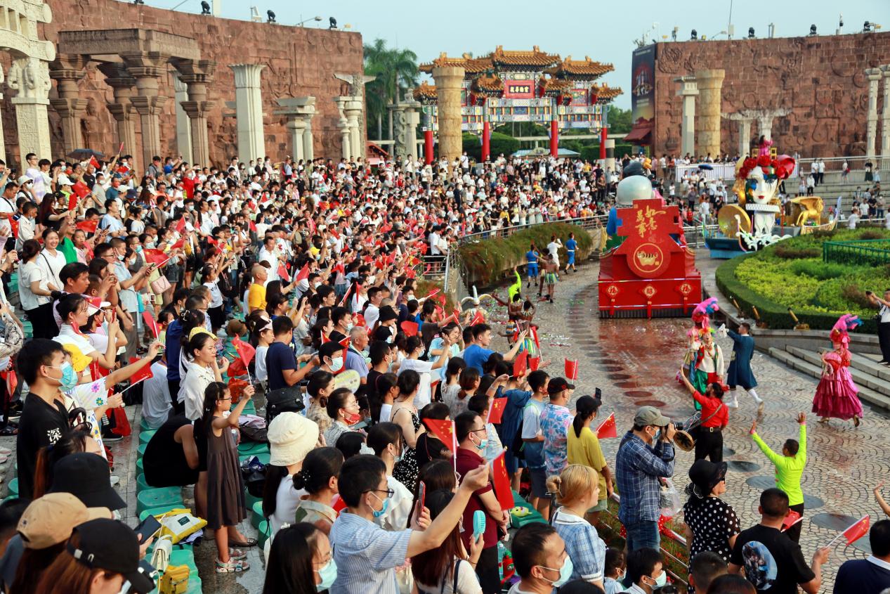 讀特客戶端·深圳新聞網(wǎng)2021年10月1日訊(記者 田志強(qiáng) 通訊員 陳嘉琳 黃海峰)今天,深圳世界之窗迎來第一波旅游小高峰。上午10:00整,世界之窗前廣場(chǎng)舉行了莊嚴(yán)的升國旗儀式,現(xiàn)場(chǎng)游客齊唱國歌,高亢嘹亮的歌聲響徹深南大道,激動(dòng)人心。閘口處,俄羅斯歡樂家庭劇、異域風(fēng)情迎賓禮以國際歡樂氛圍喜迎八方來客。