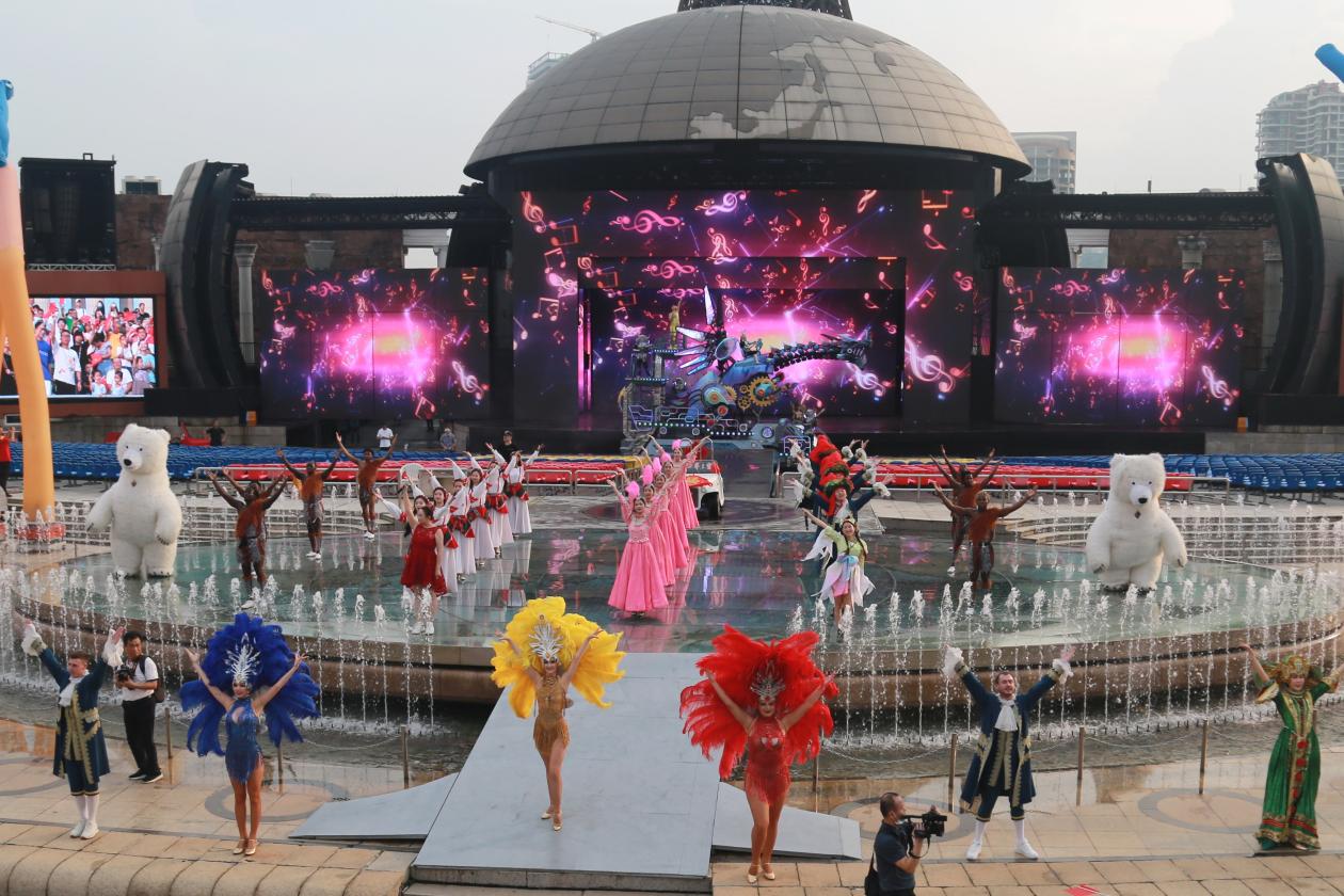 12點(diǎn)主環(huán)道世界風(fēng)情嘉年華,儀仗方隊(duì)、美女電車、紅磨坊風(fēng)情隊(duì)等充滿節(jié)日特色和國際風(fēng)格的巡游方陣,帶領(lǐng)游客一路歌舞相隨,歡樂唱和。