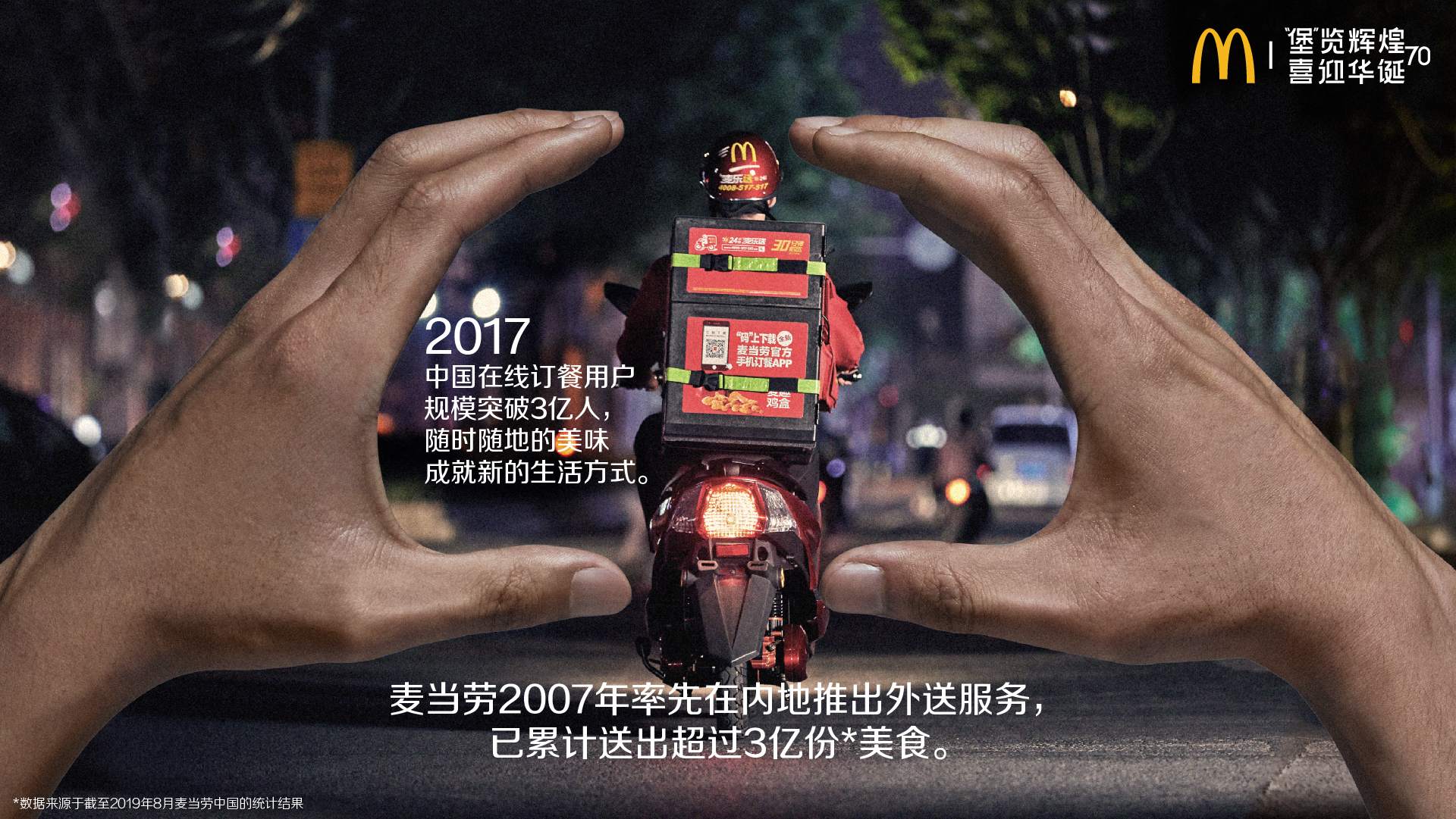 外送生活,方便美味:2017年,中國(guó)在線訂餐用戶突破3億人,外賣已成為一種生活方式。麥當(dāng)勞中國(guó)于2007年率先推出外送服務(wù)。截至2019年8月,麥當(dāng)勞累計(jì)送出超過(guò)三億份餐點(diǎn),讓消費(fèi)者在不同場(chǎng)景下享受高品質(zhì)的食品。(常軍平)