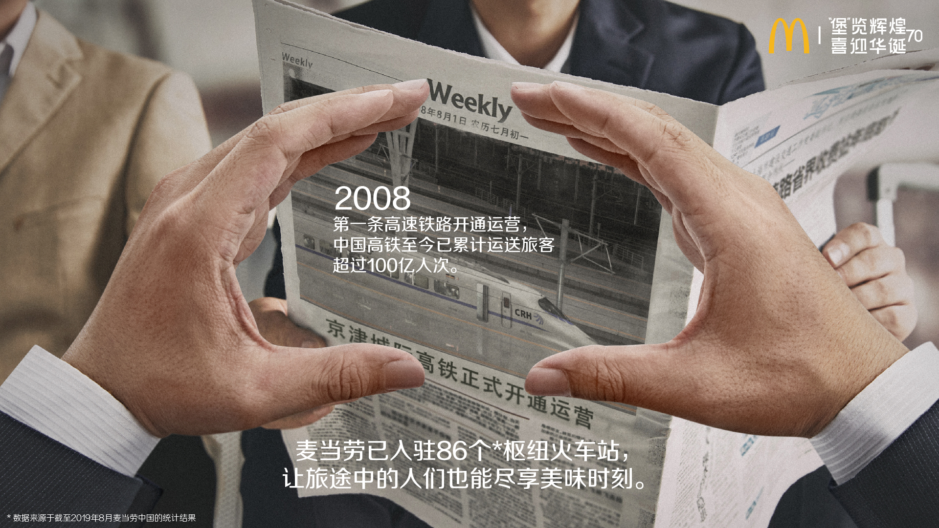 便捷出行,美味隨心:2008年,中國(guó)第一條高速鐵路——京津城際鐵路正式開(kāi)通。高鐵不僅改變了人們的出行方式,更推動(dòng)了區(qū)域經(jīng)濟(jì)發(fā)展。麥當(dāng)勞已入駐86個(gè)樞紐火車站,為旅客提供便捷美味。