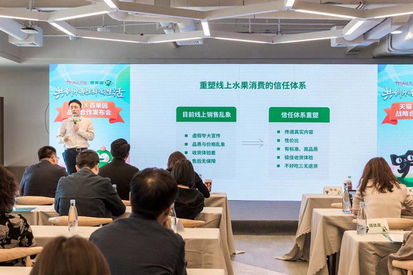 見(jiàn)圳客戶端·深圳新聞網(wǎng)2019年11月30日訊 11月29日,天貓與百果園在深圳阿里中心舉行戰(zhàn)略合作發(fā)布會(huì),天貓大食品總經(jīng)理無(wú)齡、大食品果蔬冰運(yùn)營(yíng)負(fù)責(zé)人思豪,百果園集團(tuán)副總裁焦岳、電商負(fù)責(zé)人孫鵬出席會(huì)議并發(fā)表演講。本次發(fā)布會(huì)以“共創(chuàng)水果生鮮好生活”為主題,雙方計(jì)劃通過(guò)優(yōu)勢(shì)互補(bǔ)和資源整合,從水果到生鮮進(jìn)行全面深入的戰(zhàn)略合作。