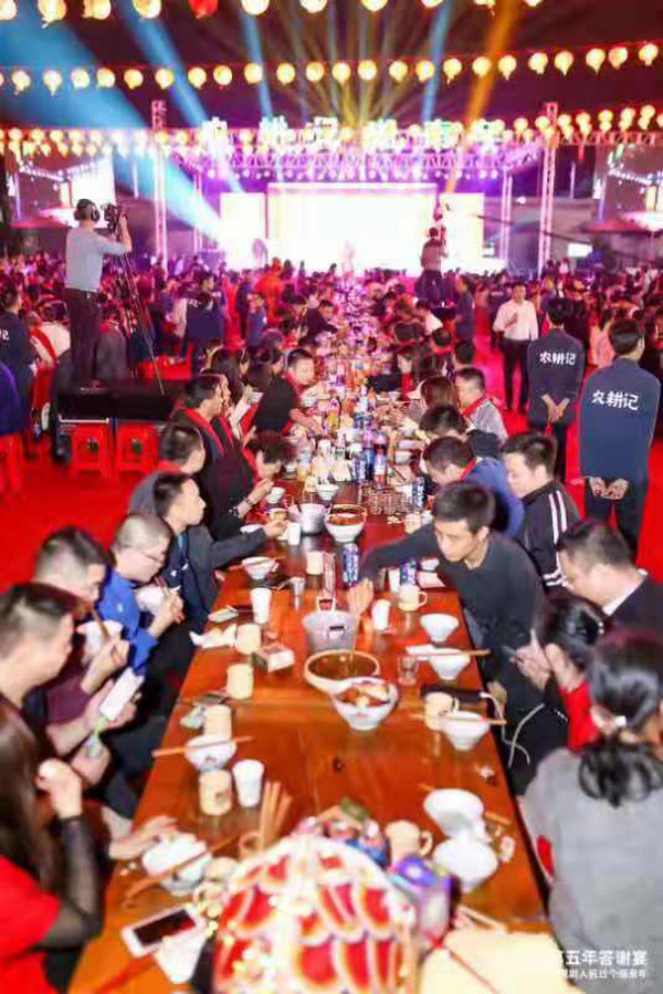 據(jù)了解,本次答謝宴是由農(nóng)耕記湖南土菜舉辦的第五年顧客答謝宴,為表達(dá)顧客對(duì)農(nóng)耕記支持的感謝,農(nóng)耕記湖南土菜在1月11日當(dāng)天在深圳22家門店進(jìn)行全場(chǎng)菜品5折的活動(dòng),同時(shí)在塘頭工業(yè)園布置近3000平米湖南村鄉(xiāng)下宴席,宴請(qǐng)全深圳人民過(guò)個(gè)湖南年。