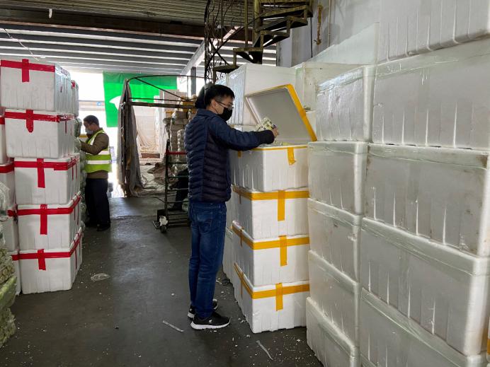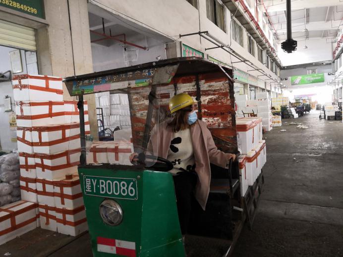 市場的檔主、物流車司機(jī)、加工工人,全部都帶上口罩,看新聞講跟人講話要保持距離,但忙起來真顧不了那么多,大家都在“搶貨”,這頭跟檔主商量好,那頭貨可能被拉走了。“貨要拉到自己的加工中心,才算是你的?!币?yàn)榇汗?jié)批發(fā)市場的檔口工人回去一大半了,沒人送貨,緊張的時(shí)候,有女同事干脆自己借一輛三輪車,把談好的貨源直接拉走。