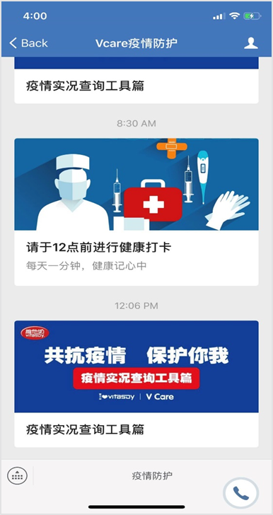 在疫情防控部分,維他奶準備充足,全力保障每一位員工的健康和安全。首先,利用企業(yè)微信,維他奶建立每日健康監(jiān)控機制,持續(xù)追蹤全體員工健康狀況。其次,公司利用微信小視頻等媒體工具制作防控指引和要求,讓員工掌握防控知識和防控要求。除了必不可少的佩戴口罩、測量體溫、健康問詢登記和辦公場所和生產(chǎn)區(qū)域的消毒工作外,維他奶還建立全方位覆蓋的防控組織和應(yīng)急預(yù)案,設(shè)立疫情防控專員,鼓勵職能部門的員工使用在線會議等溝通工具以減少近距離接觸,實現(xiàn)工作會議和防疫安全的兩不誤。