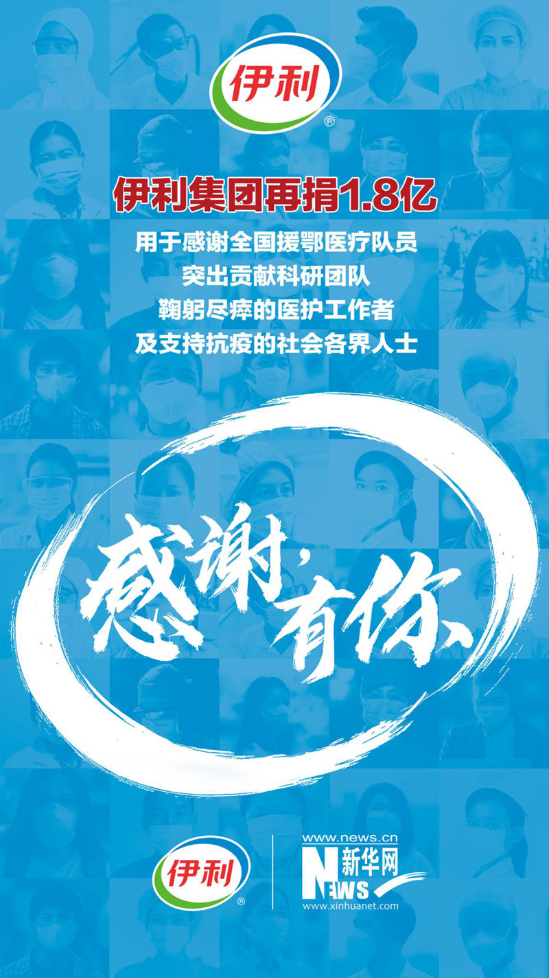 新華網(wǎng)北京3月26日電(胡可璐) 在這場戰(zhàn)“疫”中,無數(shù)平凡英雄帶給我們最多感動,他們以“逆行者”的無畏和擔(dān)當(dāng)筑起疫情防控生命線,守護(hù)著人民,守護(hù)著國家。3月26日,伊利集團(tuán)再捐1.8億,第一時間購買京東購物卡,贈送給全國所有援鄂醫(yī)療隊(duì)員,向他們提供全年?duì)I養(yǎng)支持;向鐘南山院士、李蘭娟院士、程京院士團(tuán)隊(duì)捐贈1500萬元,感謝科研工作者做出的突出貢獻(xiàn),共同推動健康領(lǐng)域的科研攻關(guān);第一時間購買京東購物卡,贈送給這次抗擊疫情中因公殉職醫(yī)護(hù)工作者的家屬,為他們提供連續(xù)十年的營養(yǎng)支持;同時也向奮戰(zhàn)在抗疫一線的社會各界人士提供營養(yǎng)保障。責(zé)任無界,大愛無疆,伊利累計(jì)捐贈額度將達(dá)2.8億,共迎抗疫勝利。