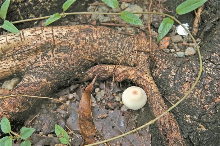 剛剛冒頭的鉛綠褶菇。深圳晚報記者陳玉攝