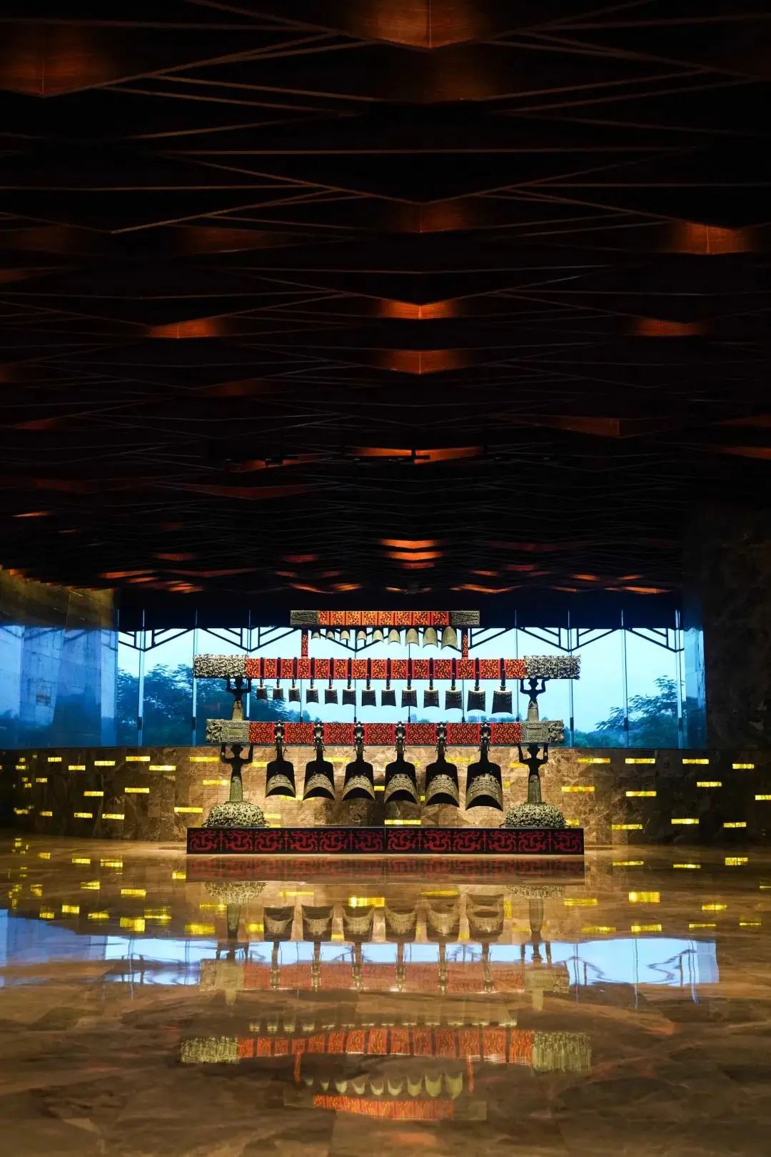 酒店掩映于一片蒼綠之中,從入口嶺南系建筑到大堂1:1還原1978年曾候乙編鐘,處處彰顯著酒店的設(shè)計巧思。