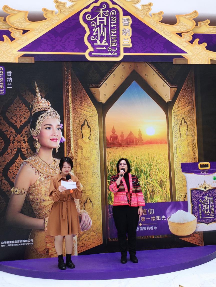 12月7日,香納蘭“泰”好吃樂,陽光之旅/益+秀新米品鑒展示活動在上海金龍魚大廈隆重舉行,益海嘉里集團特邀泰王國駐上??傤I事館農(nóng)業(yè)處領事吳佩賢女士參加活動并致辭助力香納蘭,本次活動形式豐富多彩,不僅有干貨十足的泰米知識介紹和專業(yè)泰廚現(xiàn)場教學,還有美味的泰米試吃和有趣的互動游戲。與此同時,本次活動將通過線上直播擴大傳播范圍,讓更多消費者了解香納蘭品牌的同時也能感受到獨特的泰國文化魅力。為了讓中國消費者更進一步了解泰國茉莉香米在泰國人民心目中的地位,泰國領事吳佩賢女士在直播間和粉絲做了短暫的分享。
