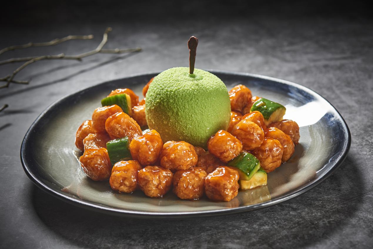 青蘋果造型的太空蛋,輕輕一敲,涌動(dòng)的慕斯傾瀉而出,咕嚕肉的酸甜與慕斯的奶甜,吃起來(lái)有滋有味,是恍如隔世的初戀味道,是記憶中那份美好的味道。
