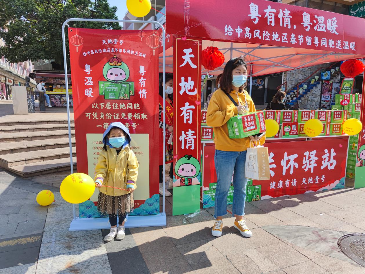為讓留粵過年的同胞在“第二故鄉(xiāng)”廣東,也能夠感受到和在老家一樣的春節(jié)氛圍,今年,天地壹號舉辦“粵有情粵溫暖”公益活動,設(shè)立關(guān)懷驛站,旨在為留深過年市民送上了來自廣東企業(yè)的新年祝福。橫朗社區(qū)相關(guān)負(fù)責(zé)人介紹說,社區(qū)總?cè)丝?.2萬多人,大部分人都積極響應(yīng)國家號召,選擇留下來就地過年。
