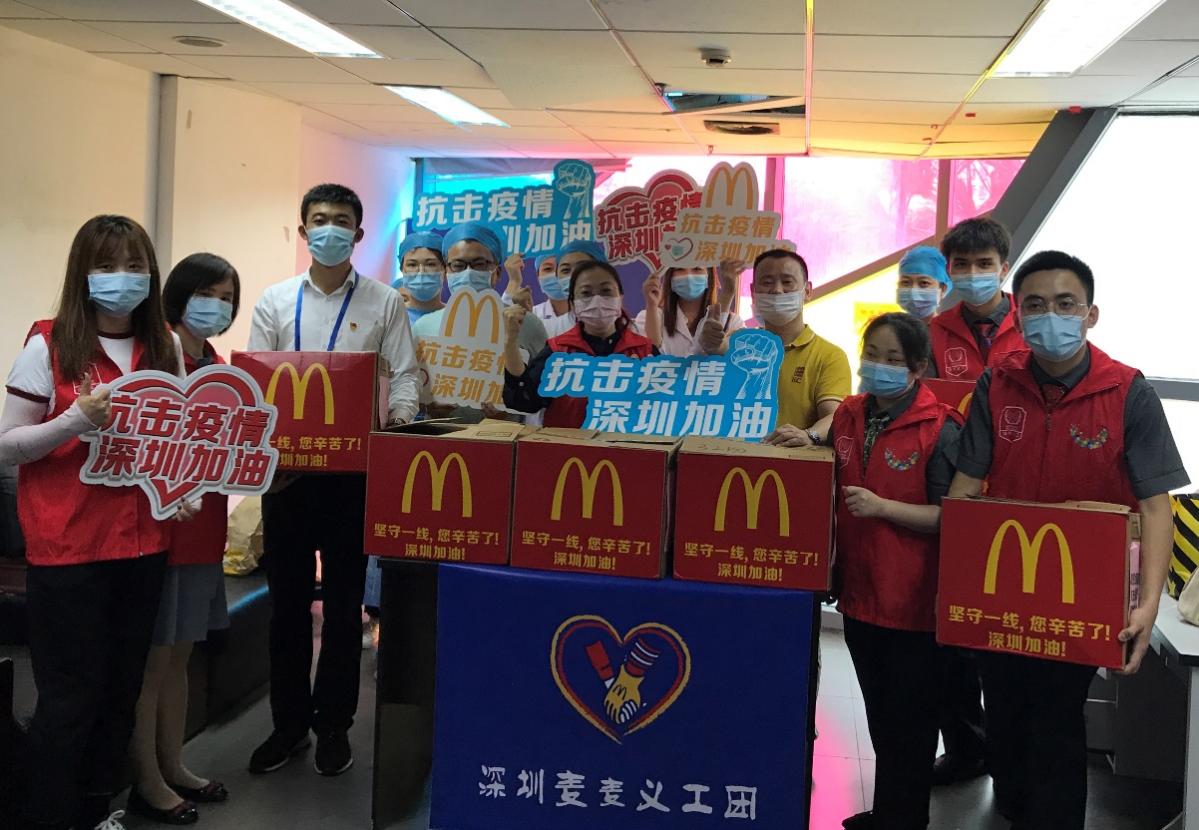 深圳麥當勞“麥麥義工團”小伙伴們向龍崗疾控中心防疫工作一線的醫(yī)護人員贈送愛心餐食